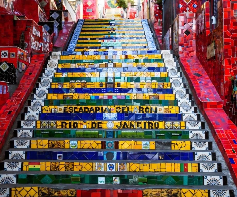 Later, visit the vibrant Escadaria Selarón, a world-famous staircase decorated with thousands of brightly colored tiles collected from over 60 countries. This striking mosaic, created by artist Jorge Selarón, has become one of Rio’s most beloved symbols, celebrating art, culture, and creativity in the heart of the city.